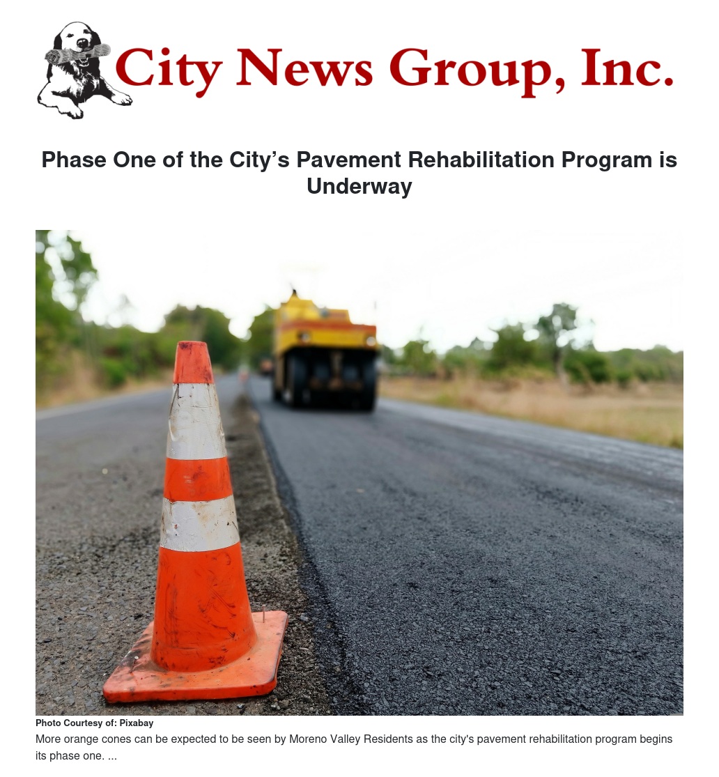 Phase One of Moreno Valley's Pavement Rehabilitation Program has officially begun across the City.