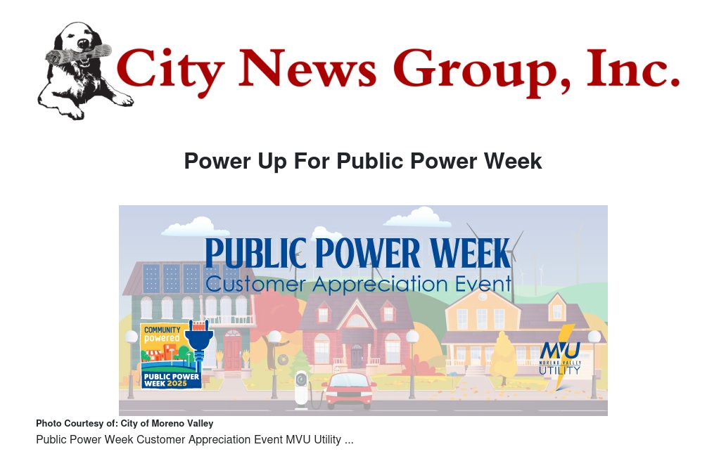 Lights, homes, and businesses across Moreno Valley glow, shine, and hum with purpose each day thanks to Moreno Valley Utility (MVU). On October 7, MVU will present a proclamation to the City Council recognizing Public Power Week, celebrated during the first week of October.