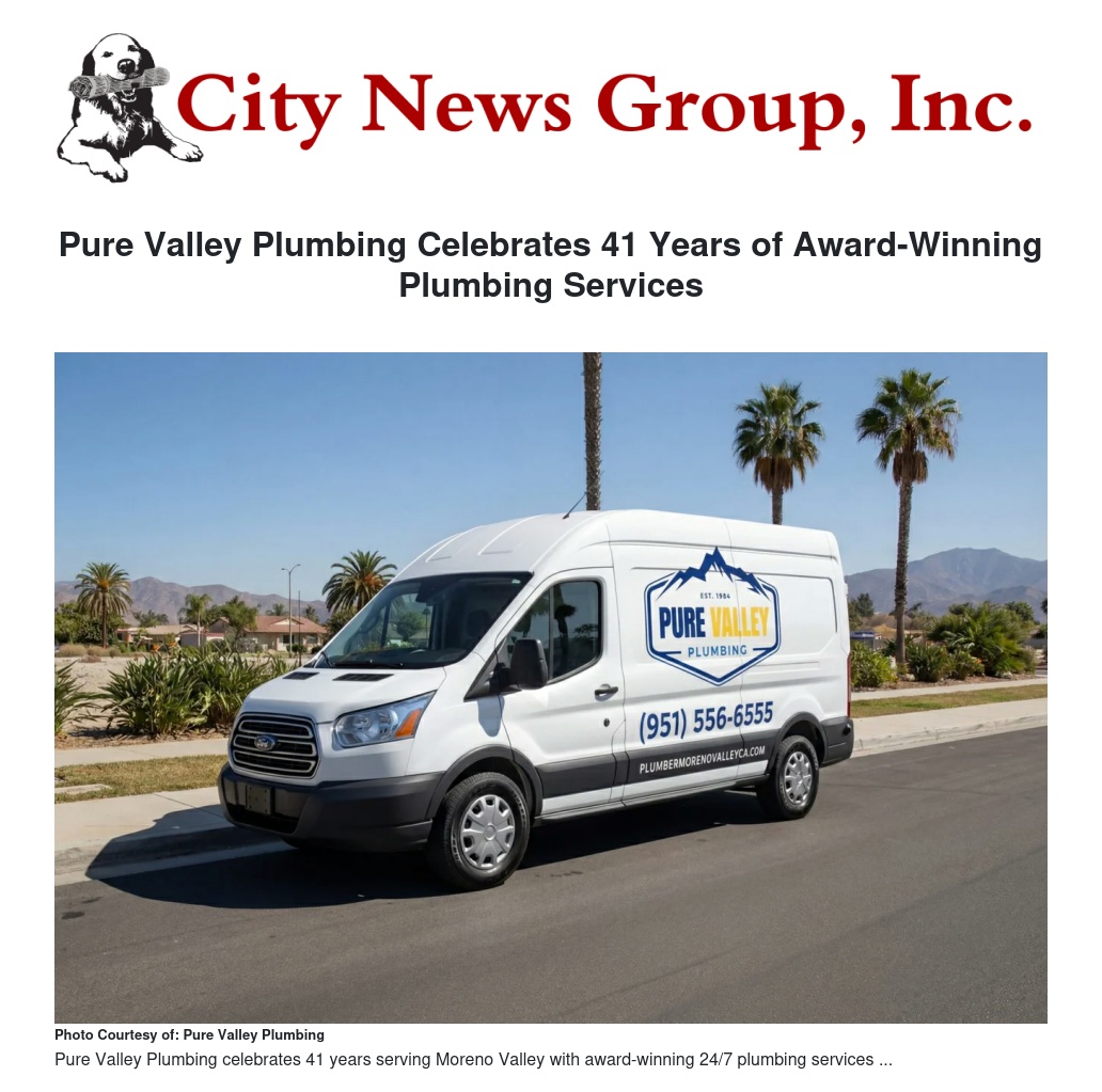 Pure Valley Plumbing Celebrates 41 Years of Award-Winning Plumbing Services by Eric Montgomery - City News Group, Inc.