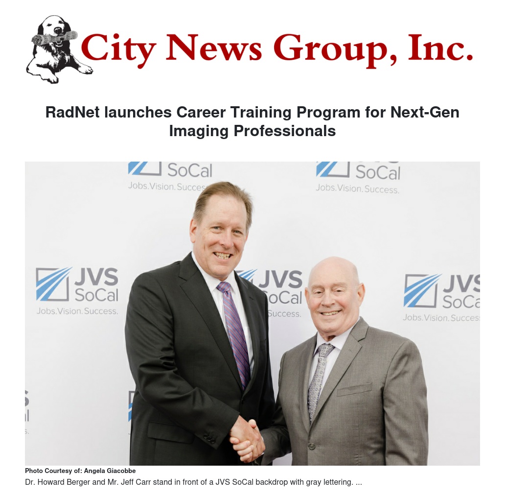 RadNet has been a leading employer-partner of JVS SoCal, especially in the CareerWorks Medical® program, having hired dozens of graduates since 2019. “Through its generosity, RadNet continues its legacy of community giving and social responsibility,” said JVS SoCal CEO Jeff Carr.