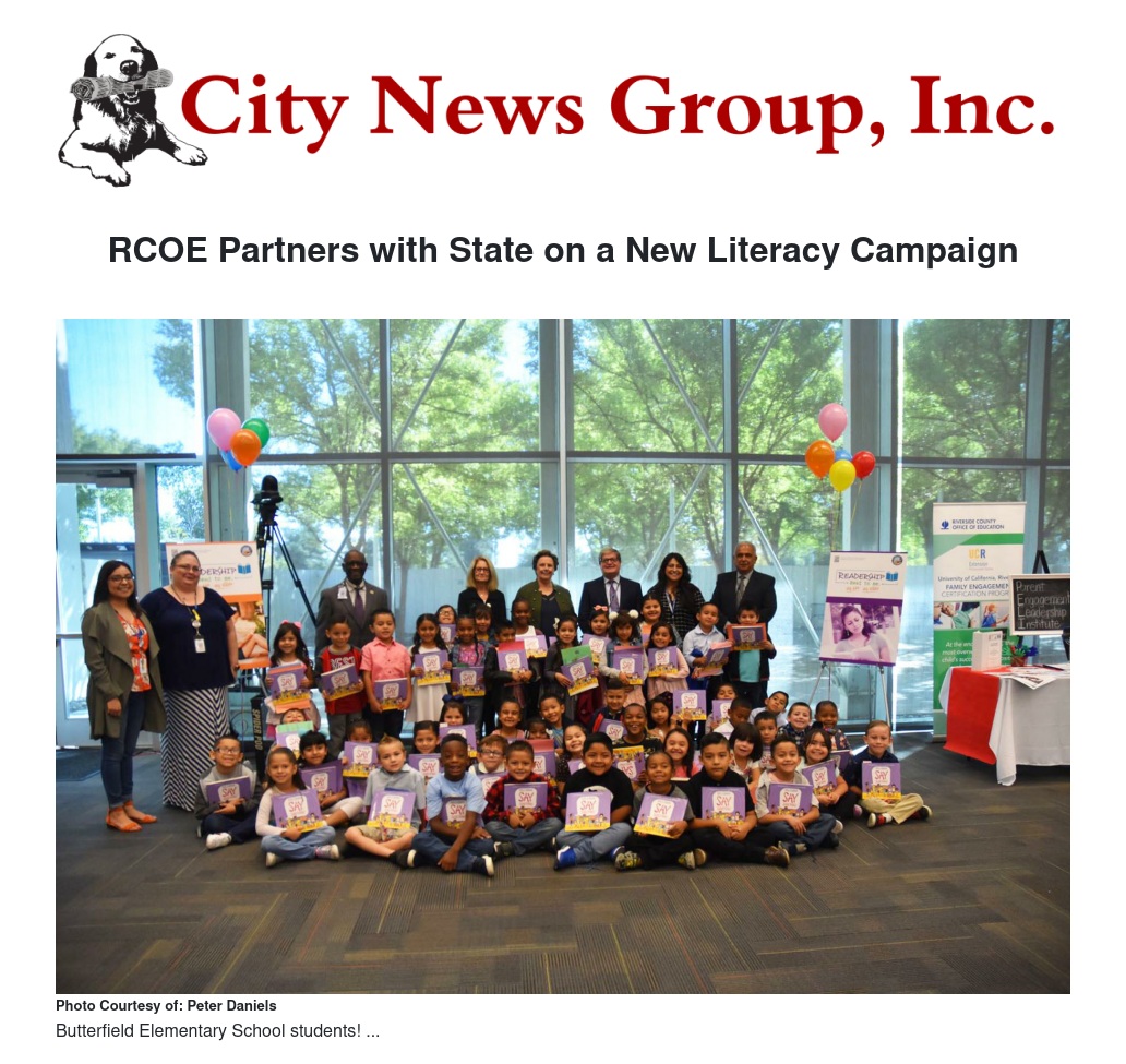 “We are excited to partner with the California Department of Education on such an urgent and important issue – increasing our students’ reading abilities,” commented RCOE Superintendent Dr. Judy D. White. “The achievement gap between white students and students of color is present before they even begin kindergarten, it’s critical all students are proficient readers, that we encourage and support a love of reading, and ultimately help to improve the literacy rates for all students in Riverside County,” said Dr. White.