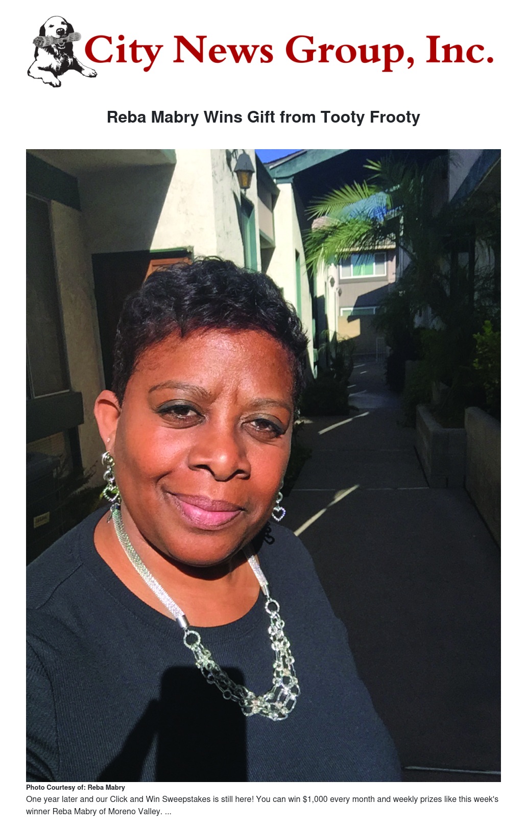 Reba Mabry Wins Gift from Tooty Frooty by City News Group - City News Group, Inc.