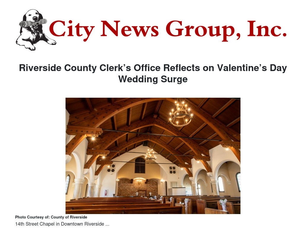 Valentine’s Day ceremonies took place at five office locations including Downtown Riverside, Riverside Gateway, Temecula, Hemet, and Palm Desert. The historic 14th Street Chapel in Downtown Riverside stands out as a popular choice, renowned for its stunning architecture and tranquil ambiance, providing a blend of historical elegance for an unforgettable wedding experience.