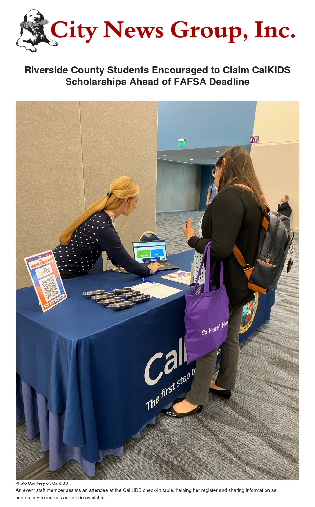 Riverside County Students Encouraged to Claim CalKIDS Scholarships Ahead of FAFSA Deadline by Vanessa Vizard - City News Group, Inc.