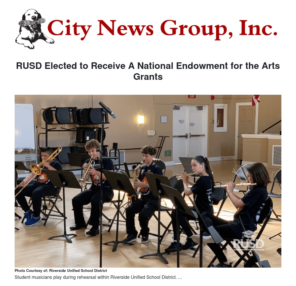 RUSD Elected to Receive A National Endowment for the Arts Grants by Luke Page - City News Group, Inc.