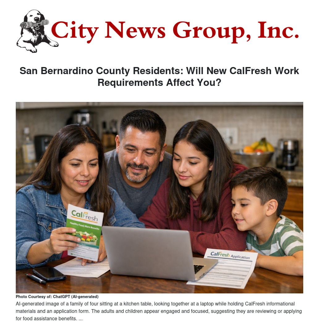 San Bernardino County, CA — CalFresh is a critical lifeline for more than 377,000 residents across San Bernardino County, and upcoming federal rule changes mean some households will need to take action to keep their food benefits. According to estimates from the California Association of Food Banks, approximately 377,207 county residents received CalFresh in 2025, representing nearly 7 percent of all participants statewide.