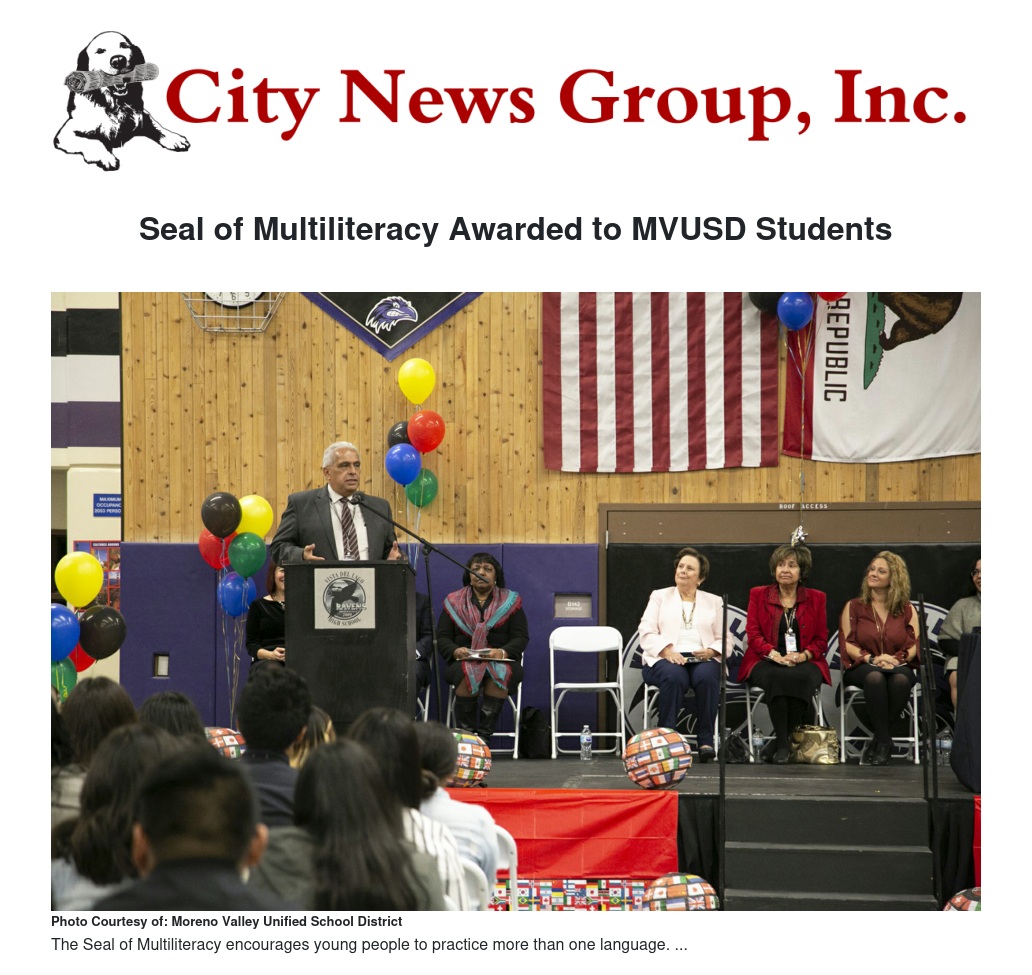 The Seal of Multiliteracy was awarded to 130 Moreno Valley Unified School District students last Thursday evening at Vista Del Lago High School.