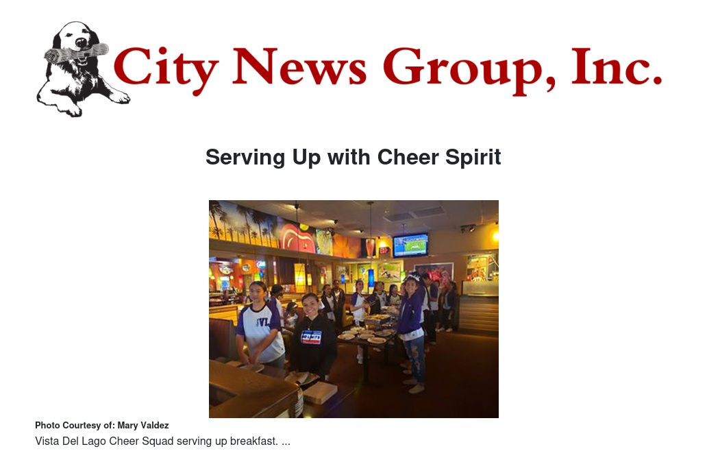 This past weekend the Cheer squad from Vista Del Lago set up their tables and pulled up their sleeves for a breakfast fundraiser at Applebees.