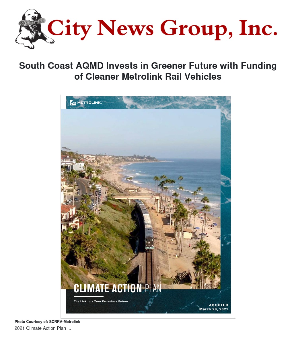 South Coast AQMD Invests in Greener Future with Funding of Cleaner Metrolink Rail Vehicles by Southern California Regional Rail Authority- Metrolink - City News Group, Inc.