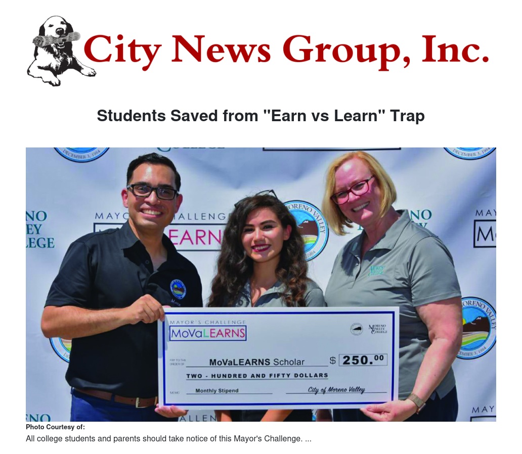 “MoVaLEARNS – Mayor's Challenge is future-thinking and a bold investment in our community, offering an exciting pathway out of the Earn vs Learn trap. It will enhance student success and benefit workforce development in our City,” said Dr. Robin Steinback, Moreno Valley College President.