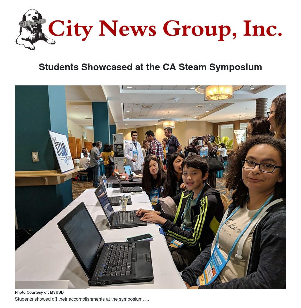 Once again MVUSD sent some of its finest students to show educators from throughout the state what we are accomplishing. Seven students were showcased at this year’s California STEAM Symposium which was held in Long Beach October 28 and 29.