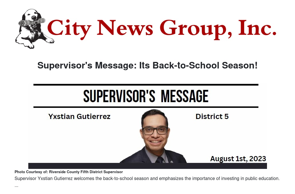 Supervisor's Message: Its Back-to-School Season! by Yxstian Gutierrez - City News Group, Inc.