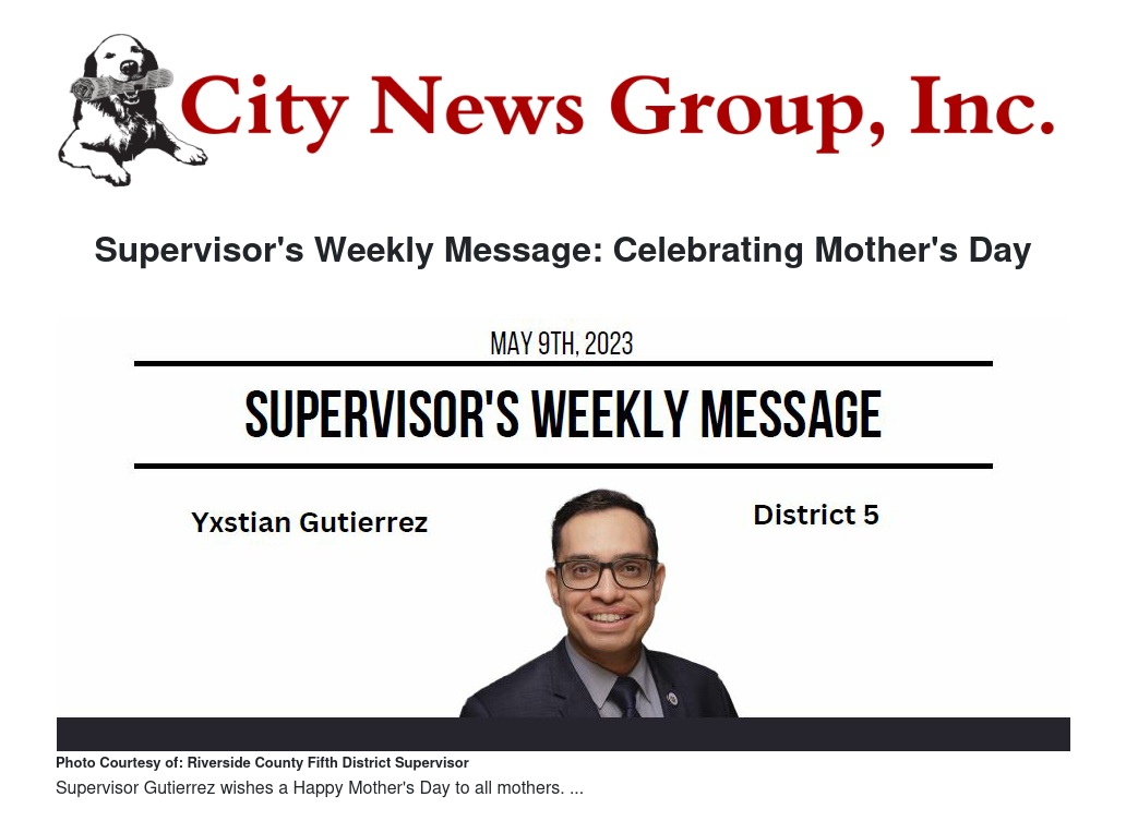 Supervisor's Weekly Message: Celebrating Mother's Day by Yxstian Gutierrez - City News Group, Inc.
