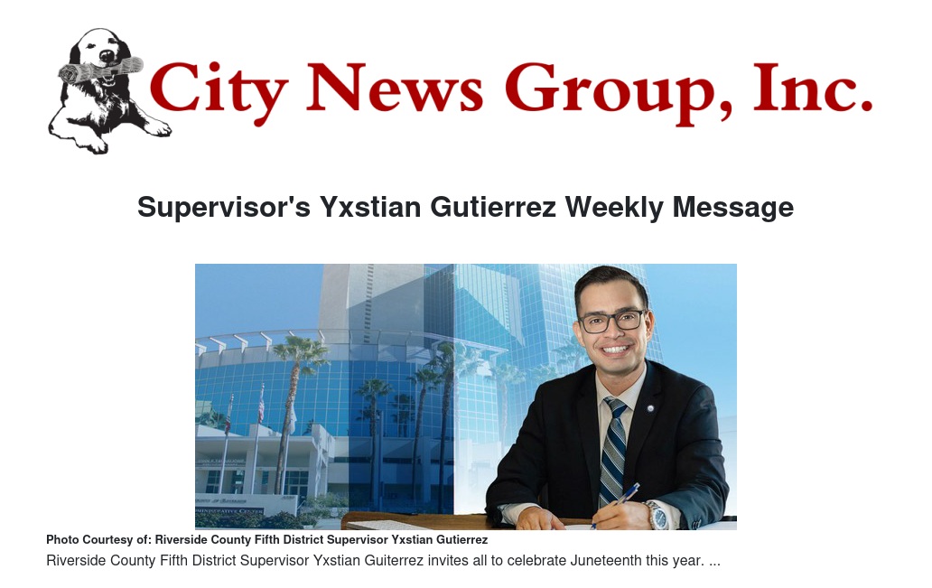 Also, at the January 24th Board of Supervisors meeting, I appointed Romelio Ruiz Jr. to the planning commission as the representative for the 5th District. Romelio will do a great job serving in this position. The Riverside County Planning Commission's next meeting will be on February 1, 2023.