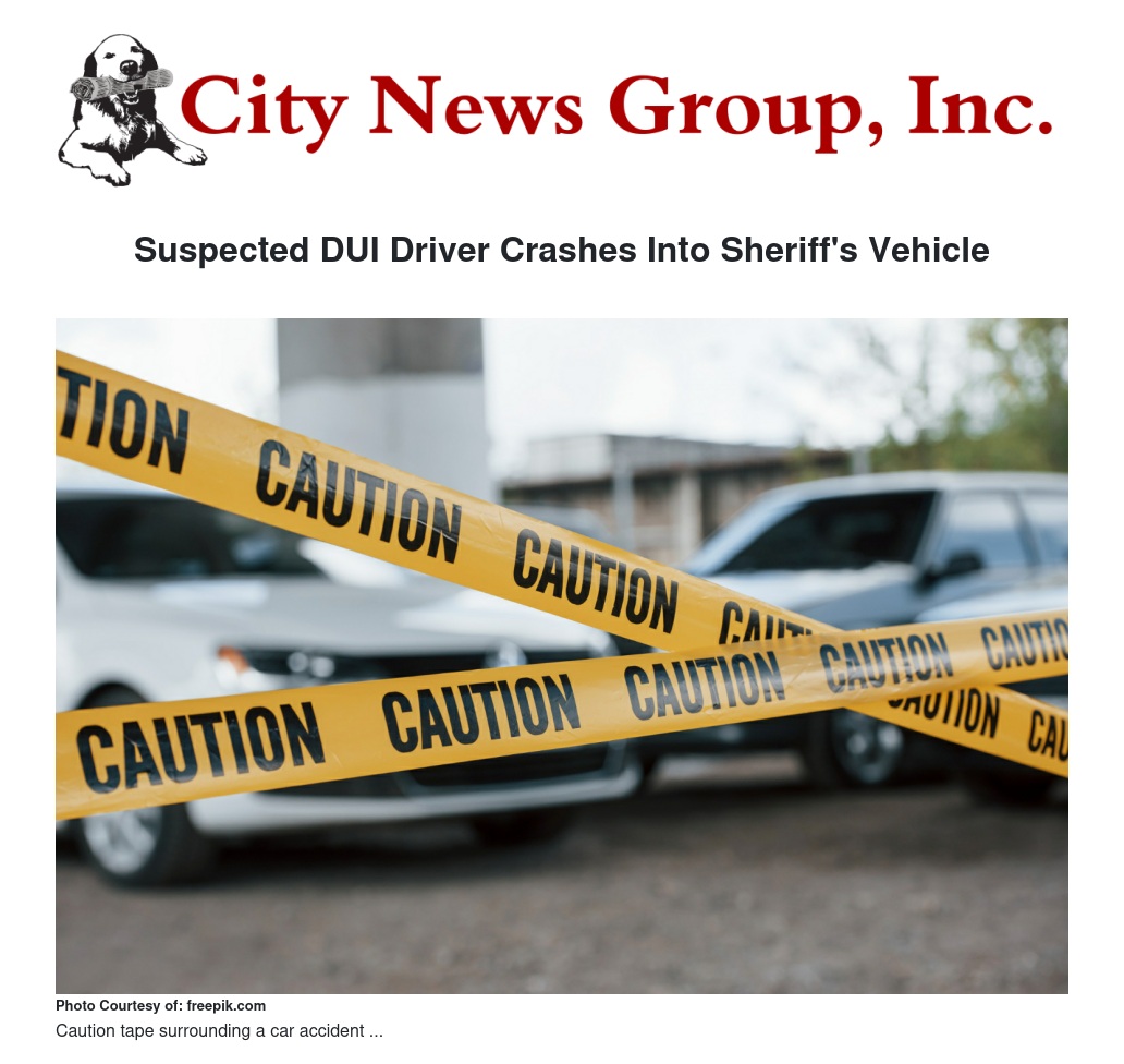 Suspected DUI Driver Crashes Into Sheriff's Vehicle by Ruby Stephenson - City News Group, Inc.