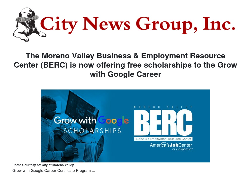 Through this program, people facing education and employment barriers can enroll through the Moreno Valley BERC to complete one of six accredited certificate programs at no cost.