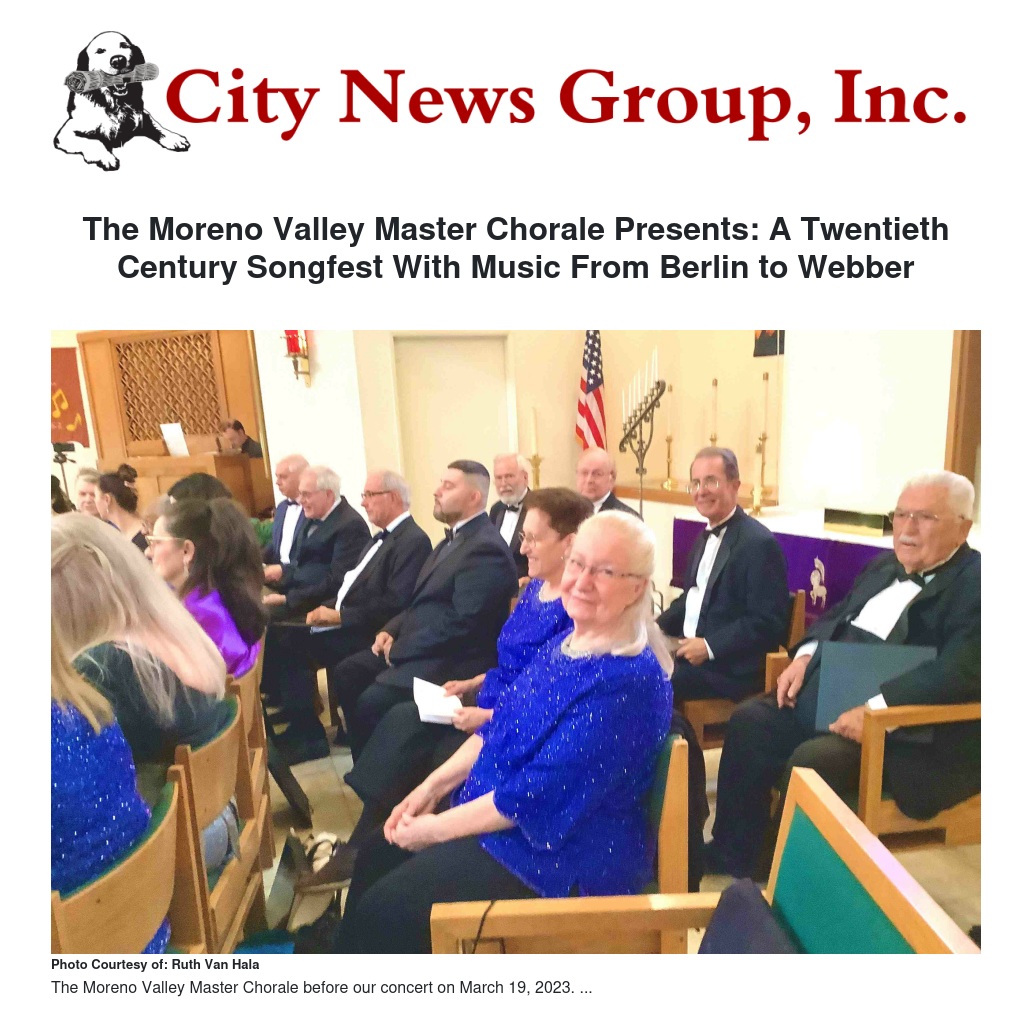 On Sunday, June 4, 2023, at 4:00 P.M., the Moreno Valley Master Chorale, directed by Dr. Viorel Gheorghe, will perform a concert featuring many of the most popular songs written in the 20th century. The event will be the last concert for the Chorale’s 2022-23 season and will be held at the Shepherd of the Valley Lutheran Church, 11650 Perris Blvd., Moreno Valley, CA 92557.