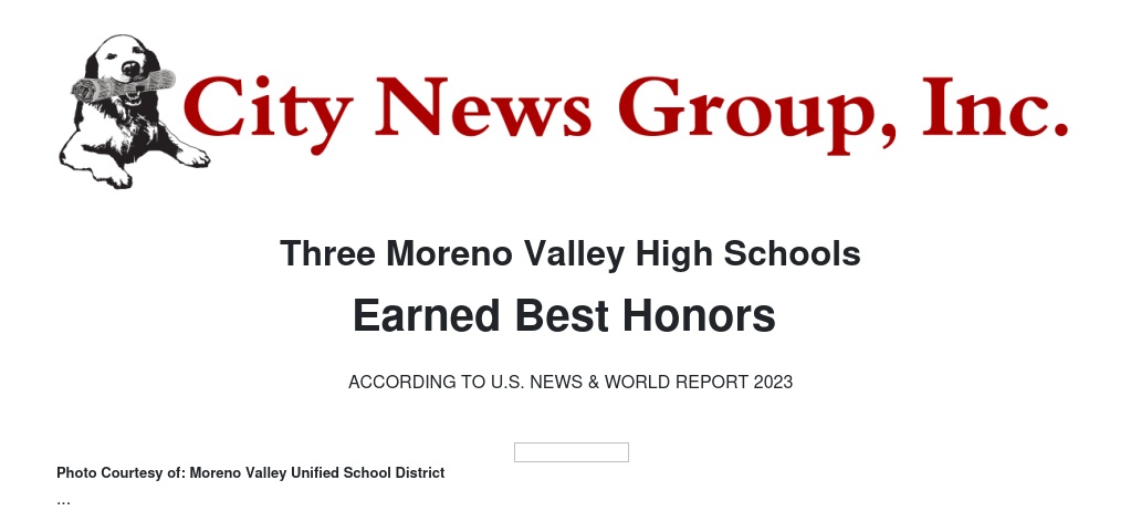 Moreno Valley, Calif. - Moreno Valley Unified School District has three schools that earned honors as “Best” high schools in U.S. News & World Report’s 2023 Best High Schools rankings, which were published Aug. 29: