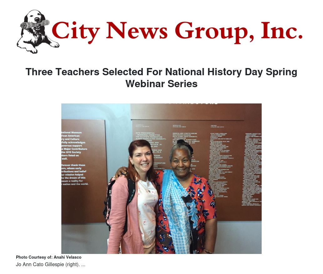 For several months, Mrs. Jo Ann Cato Gillespie, Ms. Romero, and Ms. Byrd worked with their peers around the country and National History Day staff to build knowledge for teaching with the online Library of Congress resources. Upon completion of the series, they will have demonstrated the ability to share with her students key strategies for researching, supporting, and presenting historical arguments bolstered by these primary sources.