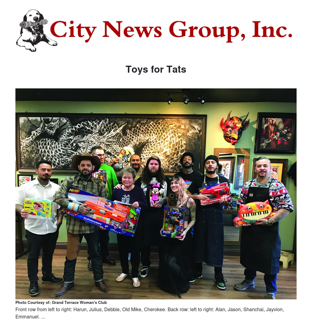 Grand Terrace Woman's Club is extremely grateful to Paragon Tattoo in