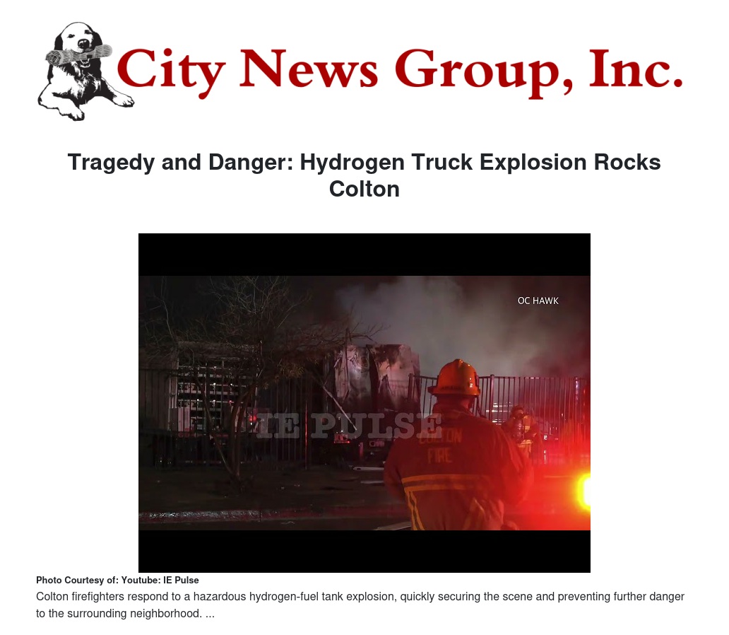 Tragedy and Danger: Hydrogen Truck Explosion Rocks Colton by Charmaine Mislang - City News Group, Inc.