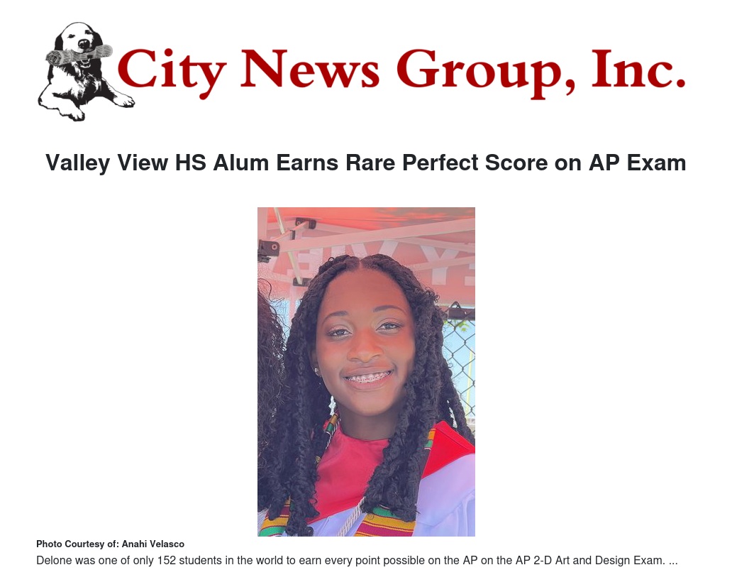 Delone was one of only 152 students in the world to earn every point possible on the AP on the AP 2-D Art and Design Exam.