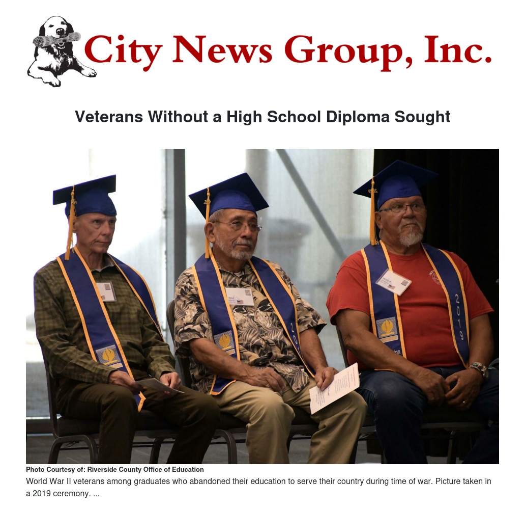 RCOE will host an in-person ceremony this year with diplomas presented to veterans on November 9, 2021, at 2 pm at the RCOE Board Room located at 3939 Thirteenth Street, Riverside, CA 92501.