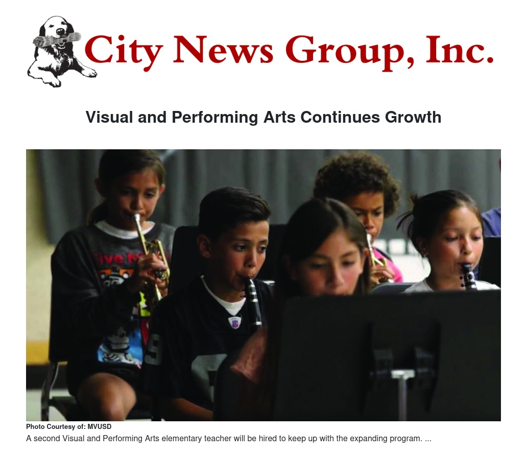 If you have a desire to join others who feel the arts are a necessary part of our community life, contact Greg Solomon at gsolomon@mvusd.net to join the “Arts Now Community.” This is a group of teachers and community members interested in supporting the arts.