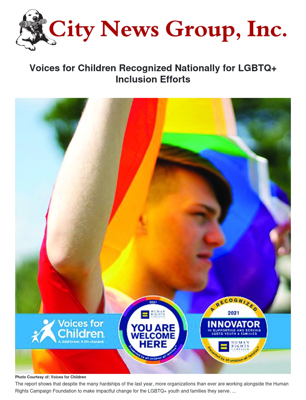 Voices for Children is proud to announce that it has been recognized as a top-tier change-maker by the Human Rights Campaign (HRC) Foundation, which just released its third annual Change-Makers report. The local nonprofit organization, which transforms the lives of abused, abandoned, or neglected children by providing them with trained, volunteer Court Appointed Special Advocates (CASAs), joins 119 child welfare agencies across the country who have worked with the HRC Foundation’s All Children - All Families (ACAF) program to improve the services they provide to the LGBTQ+ community, including children in foster care (one in three of whom are LGBTQ+). These organizations serve more than 1 million clients annually across 35 states and employ more than 24,000 employees.