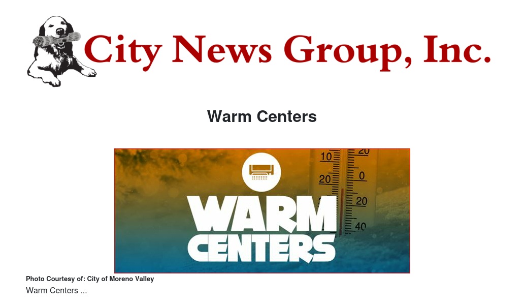 As temperatures cool, the City of Moreno Valley is offering warm centers for residents to get out of the cold.