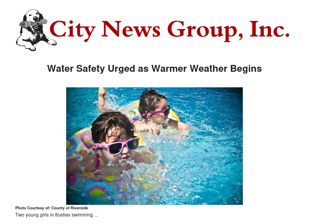 “This is an especially important time of year to be mindful of children and all family members when they are around water. It’s also an important time to ensure our children and grandchildren take survival swim lessons and learn the rules around the pool,” said Riverside County Third District Supervisor Chuck Washington.