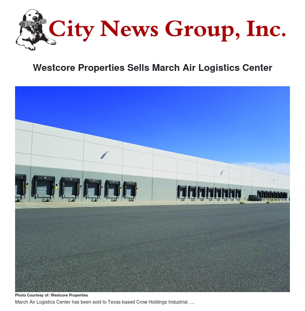 Westcore Properties has sold the 277,270-square-foot March Air Logistics Center, an air cargo and industrial facility at the March Inland Port (formerly March Airforce Base), to Dallas, Texas-based Crow Holdings Industrial in an off-market transaction for an undisclosed sum.
