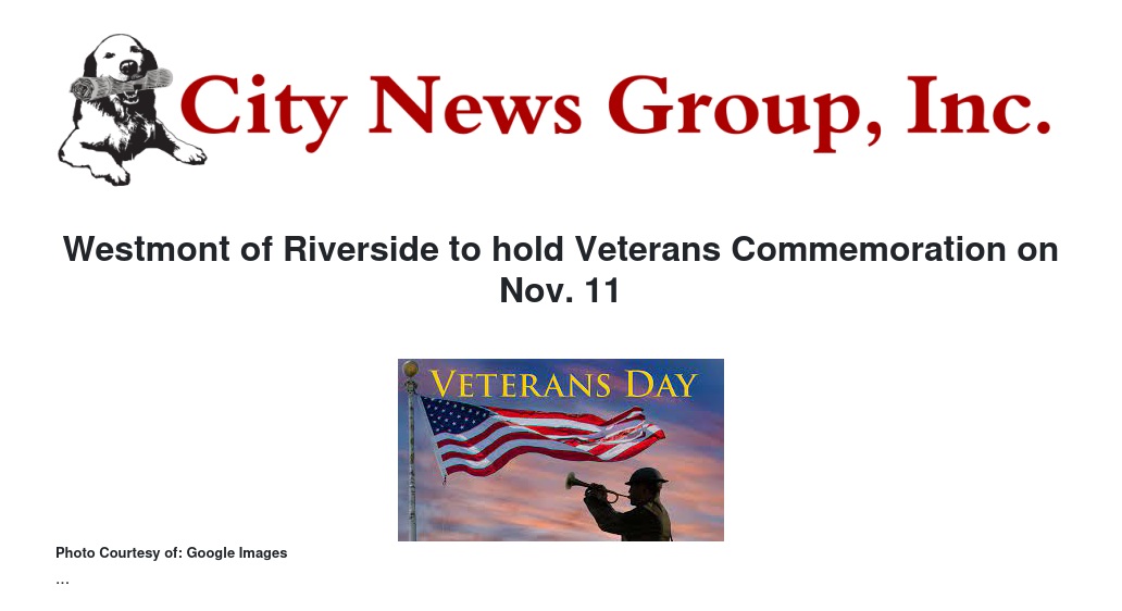 Westmont of Riverside to hold Veterans Commemoration on Nov. 11 by Walke Communications - City News Group, Inc.