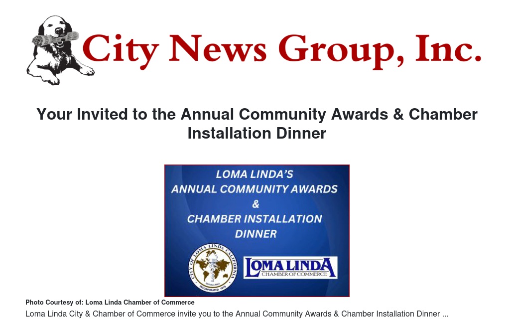 Loma Linda City & Chamber of Commerce invite you to the Annual Community Awards & Chamber Installation Dinner